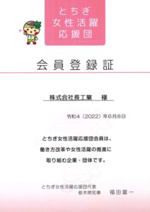 仕事と育児を両立させ、安定してしっかり稼ぎたい方も応援しています。女性やシングルマザーが働きやすい環境が整ってきているとはいえ、子どもの体調不良を理由に仕事を休むことが難しかったり心苦しいと感じたりする女性は少なくありません。長工業ではとちぎ女性活躍応援団に登録して子育てと仕事の両立を積極的に支援しています。体調不良はもちろん、授業参観や学校行事などがあっても、周囲で協力してフォローします。お子様がいても働きやすい職場環境を目指しています。